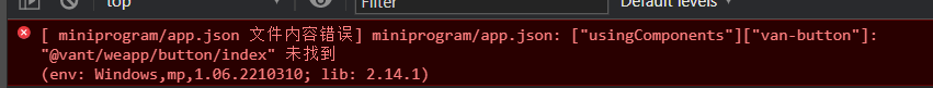 如果你按照 Vant Weapp 官网的方法使用某个组件,路径什么的,代码什么的都没错,但就是报错,还是路径错误。比如: