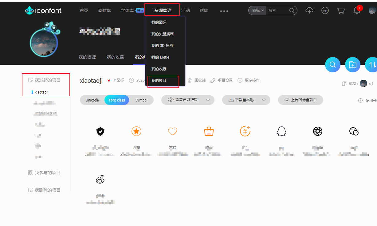 【资源管理】-> 【我的项目】->【这里选择你自己的项目名】