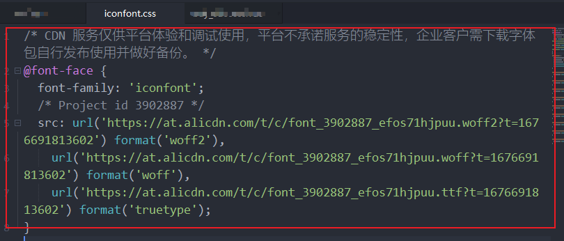 - 最后一步就是将更新后的代码,复制到iconfont.css中对应的位置。